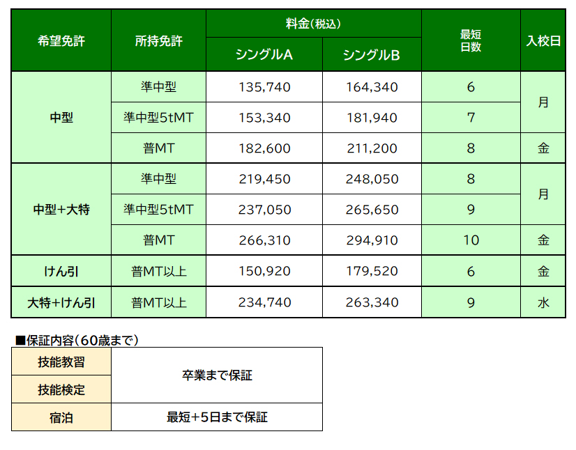 - 交通費補助があります(中型:20000円まで セット教習:30,000円まで)。※けん引単品は交通費の支給対象外となります。